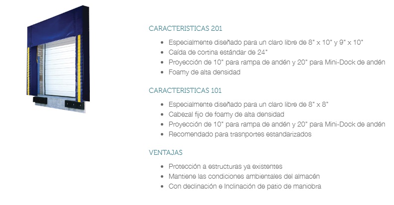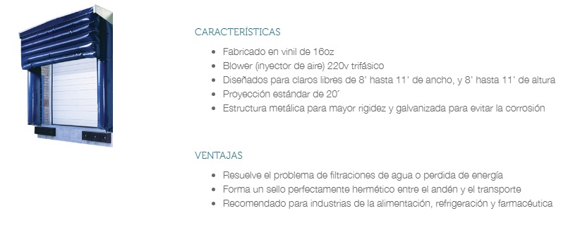 Los sellos de andén proporcionan un ambiente hermético entre la caja del camión y el almacén, obteniendo un ambiente aislado del exterior durante las maniobras de carga y descarga, evitan el robo de mercancía, el paso de aves, insectos, polvo, entre otros.